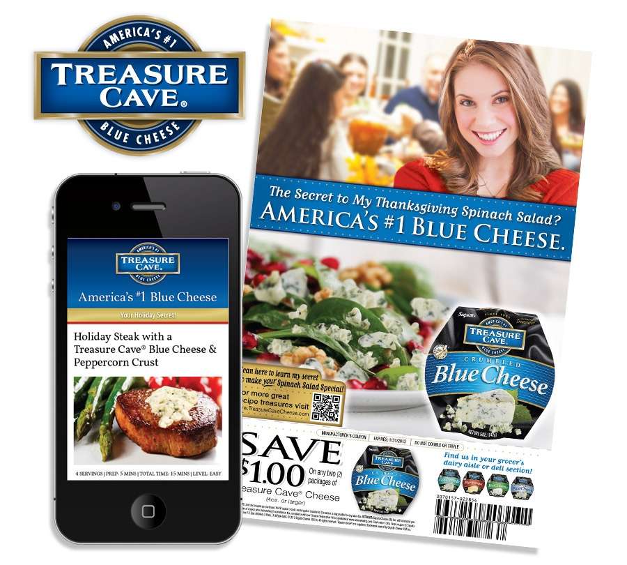 National FSI placements appeal to Boomers, while new mobile-optimized recipe microsites, driven by QR codes on-pack, help a newer generation discover the Treasure Cave® secret for themselves. Seasonality and occasion help define which recipes are highlighted, improving weekday usage. FSIs also offer coupons, enticing consumers to take advantage of the premium product at a greater value.